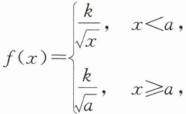 $f(x)=\begin{cases}\frac{k}{\sqrt{x}}, & x\lt a, \\ \frac{k}{\sqrt{a}}, & x\geq a,\end{cases}$