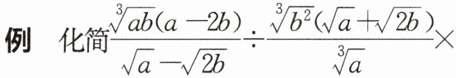 变式:化简 $ 2\sqrt[4]{b} \left( - 3\sqrt[4]{b} × \frac{1}{\sqrt[3]{a}} \right) ÷ \left( - \frac{6\sqrt[3]{a^2}}{\sqrt{b}} \right) $.