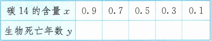 由表中的数据可以发现,随着碳14含量的递减,生物死亡年数越来越大.