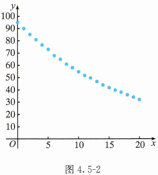 解:(1)描点画出水温 $ y $ 关于时间 $ x $ 的散点图(图 4.5 - 2).