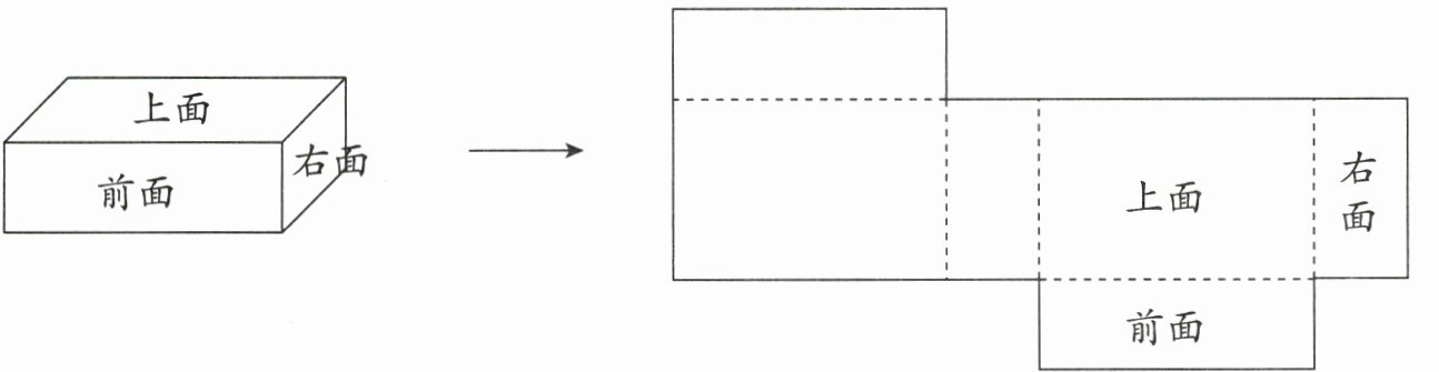 五、把长方体纸盒剪开,得到它的展开图(如下图)。请你标出长方体的下面、后面和左面。(9分)