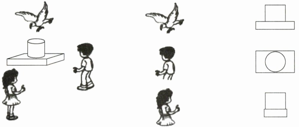 4. 下面右边的三幅图分别是谁看到的?(9分)