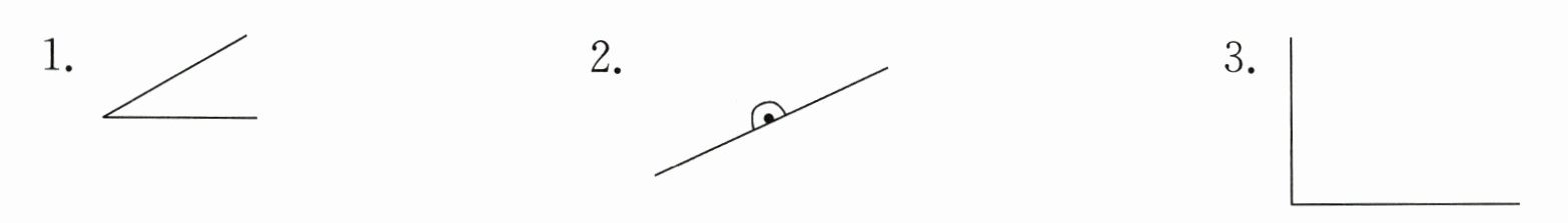 三、量出下面各图中角的度数,并说一说它们都是什么角。(12 分)
