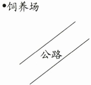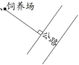 三、从饲养场到公路要修一条路,你觉得怎样设计最合适?请画一画。(5分)