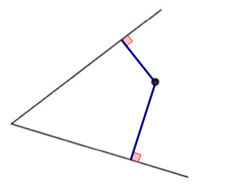2. 经过角内的一点,分别画出两条边的垂线。
