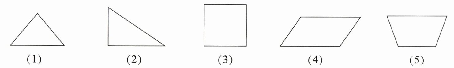 五、量出下面各图形中每个角的度数,再填写下表。(15 分)