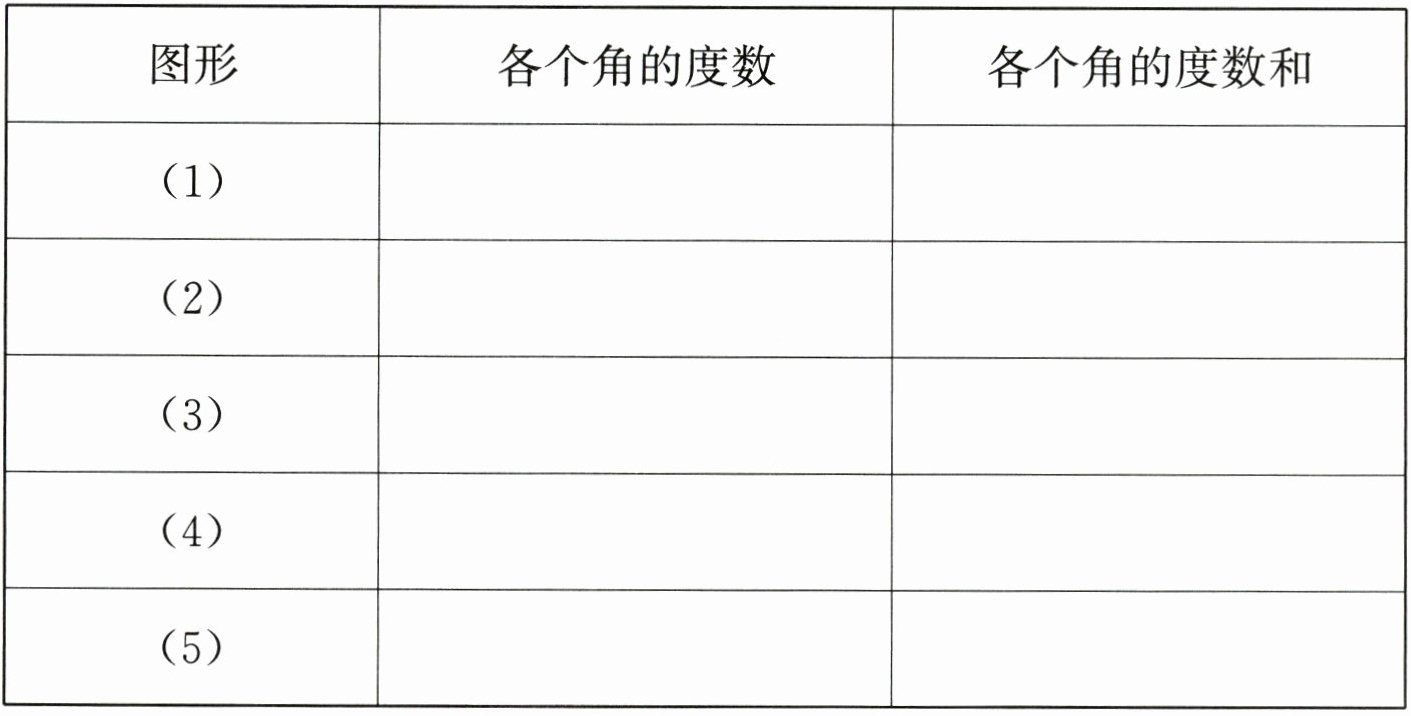 | 图形 | 各个角的度数 | 各个角的度数和 |