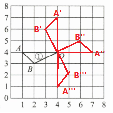 2. 如果把图形①继续绕点O顺时针旋转90°,点$A'$、点$B'$又将分别会转到什么位置?(6分)
