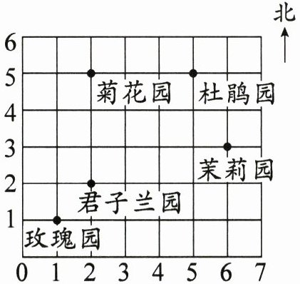 (1)怎样用数对表示图中玫瑰园、君子兰园等 5 个园在植物园中的位置?