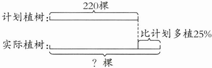 $220×(1 + 25\%)=220×1.25 = 275$(棵)