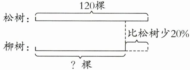 柳树的棵数比松树少$20\%$,松树有$120$棵,则柳树的棵数为: