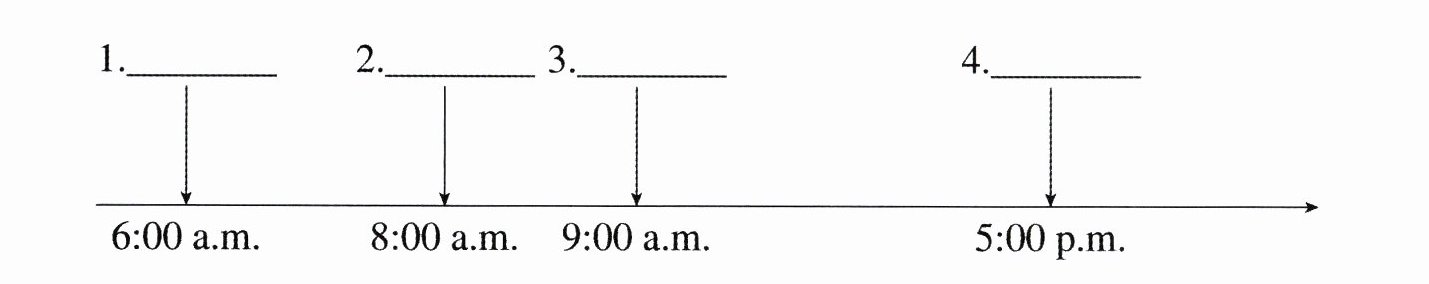 6:00 a.m. 8:00 a.m. 9:00 a.m. 5:00 p.m.
