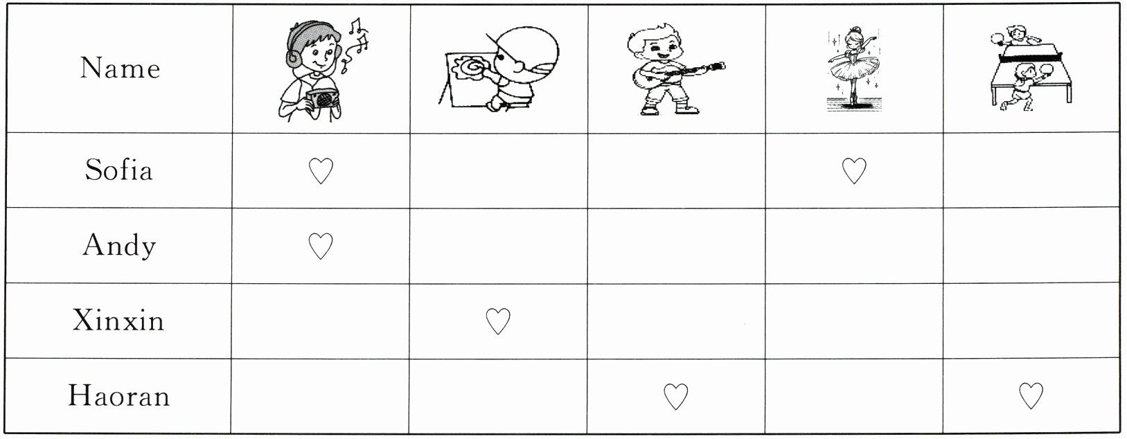 )5.Sarah loves to draw pictures of animals. What is her hobby?A.Swimming.