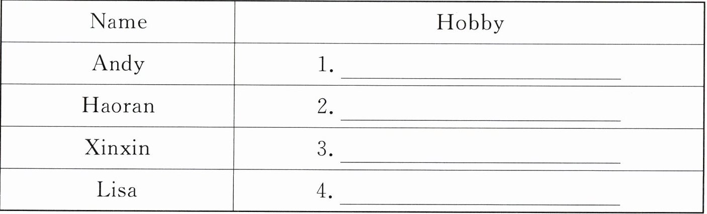 Ⅲ.1.listening to music 2.reading books 3.practising kung fu 4.playing the guitar