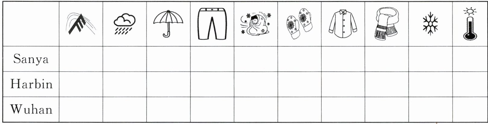 Ⅶ. 读天气预报,在相应方框中画“√”。(20分)