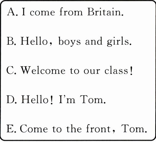1.Good morning 2.Welcome to our class, Go back 3.I come from China 4.How old are you