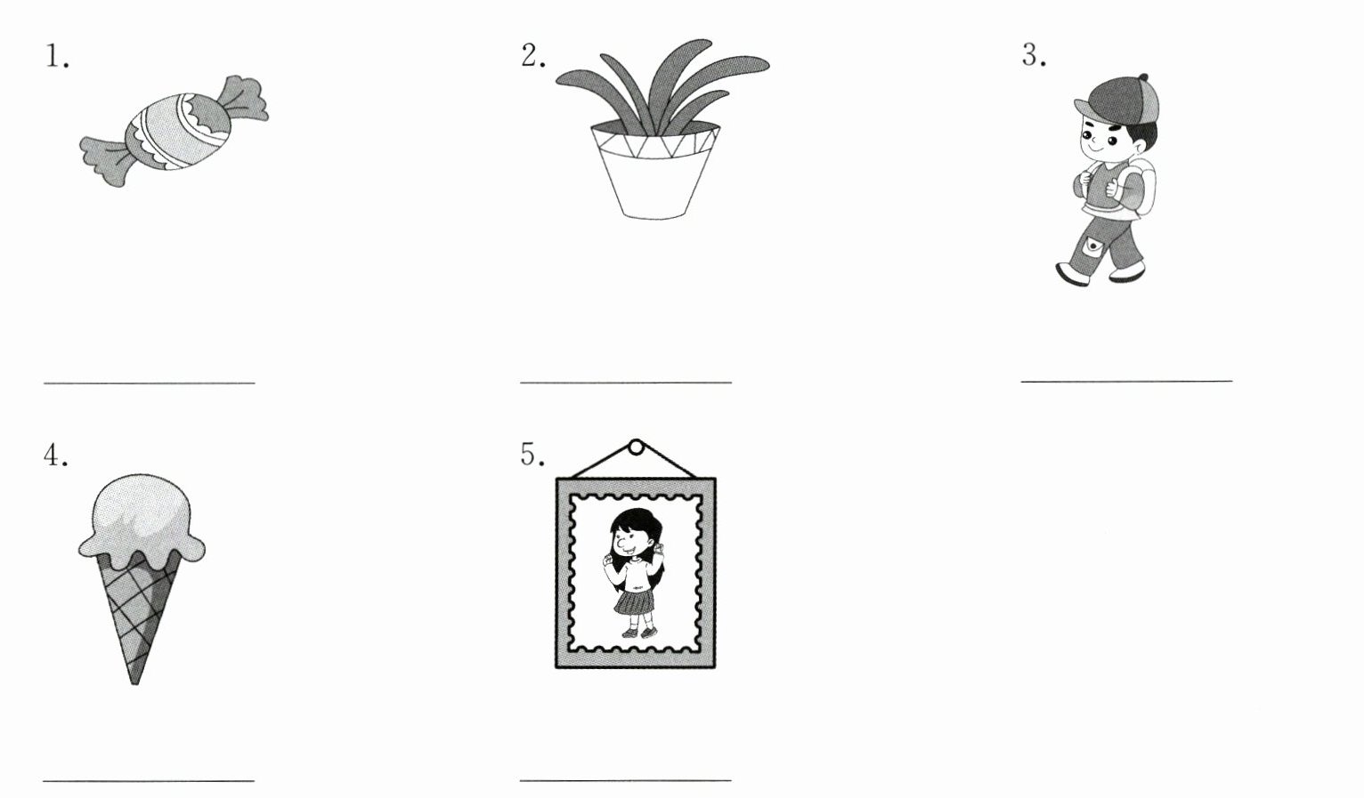 1.candy 2.plant 3.walk 4.ice cream 5.photo/picture