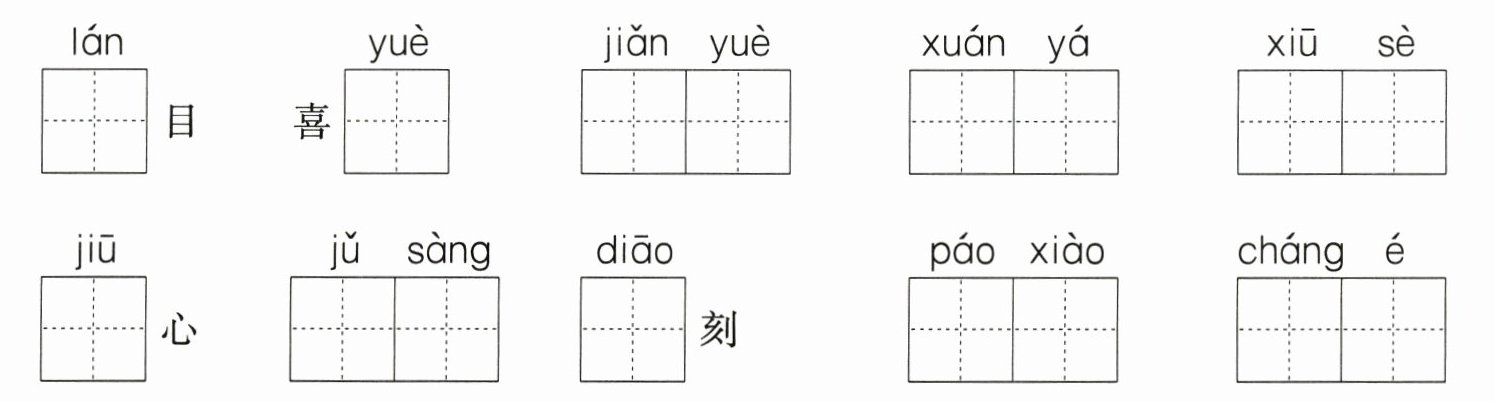 2.栏 悦 检阅 悬崖 羞涩 揪 沮丧 雕 咆哮 嫦娥