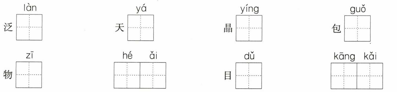 1.滥 涯 莹 裹 资 和蔼 睹 慷慨