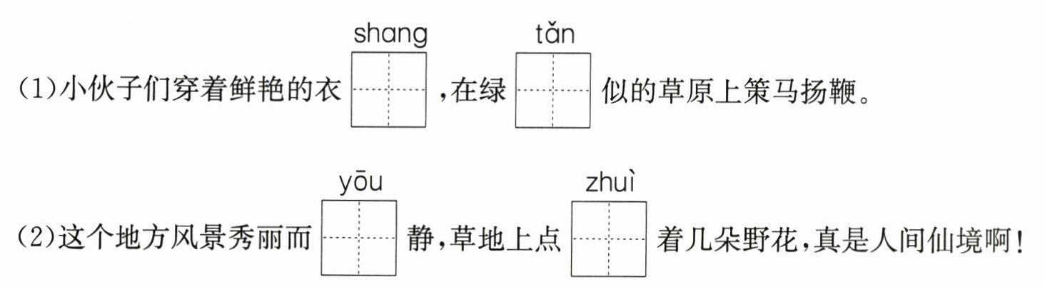 ①②都可以用来形容(颜色),其中①用来形容颜色(程度深范围广),②用来形容颜色(程度深范围广)。我还会选择①②填入下列句子中:夏天,呼伦贝尔大草原(①