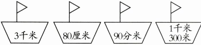 三、3千米>1千米 300米>90分米>80厘米