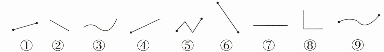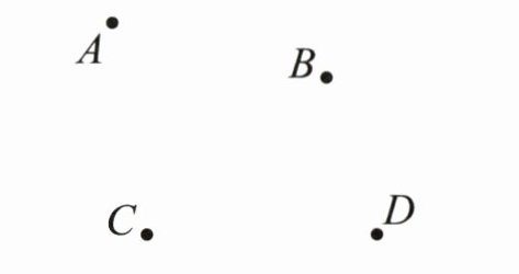 1. 经过下面任意两点画直线,可以画几条直线?画一画,数一数。(4分)