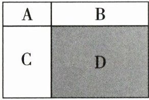 一块长方形地,被分成A、B、C、D四块小长方形地,A的面积是3公顷,B的面积是6公顷,C的面积是9公顷,求涂色部分的面积。