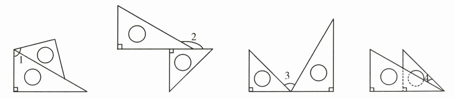 四、先动手拼一拼,再算出各图中所标的角各是多少度。(8分)