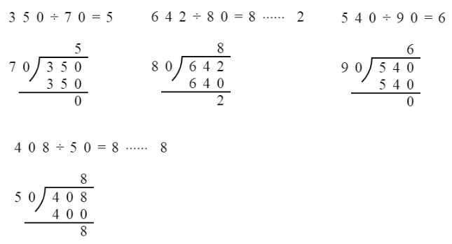 $350÷70=$ $642÷80=$ $540÷90=$ $408÷50=$