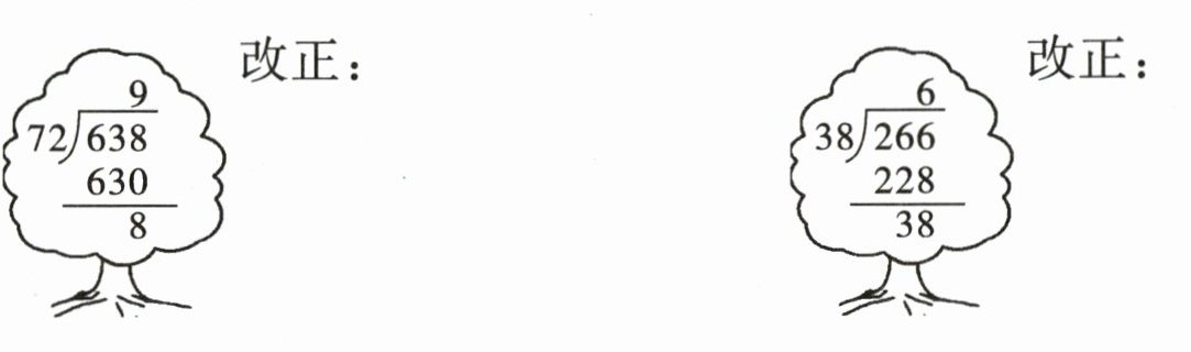 四、数学诊所。(小马虎平时做题很不认真,结果这两道题他都做错了,请你帮他改正过来)(4分)