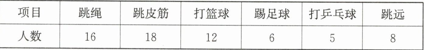 (2)解:最喜欢跳皮筋的人数是$18$人,最喜欢踢足球的人数是$6$人,$18÷6 = 3$,所以最喜欢跳皮筋的人数是最喜欢踢足球的$3$倍。