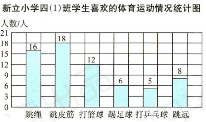 一、下面是新立小学四(1)班学生最喜欢的体育运动情况统计表。(20 分)
