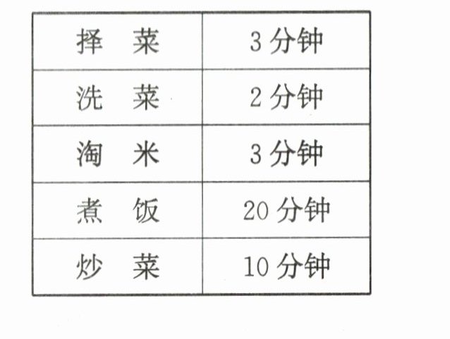 三、妈妈准备一次晚饭需要做下面的几件事情。(8分)