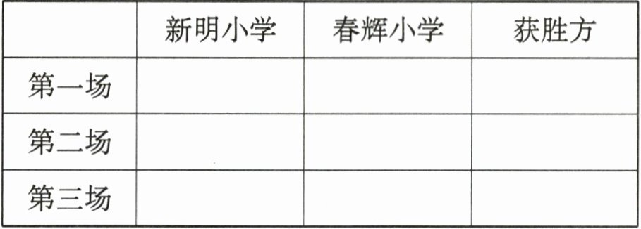 | | 新明小学 | 春辉小学 | 获胜方 |