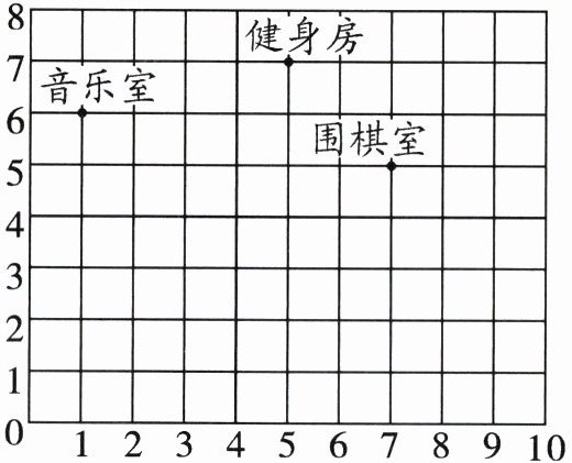 3. 如果你的位置在 $ (6,2) $,那么你能沿着方格画出你到音乐室的路线吗?在图中画一画。