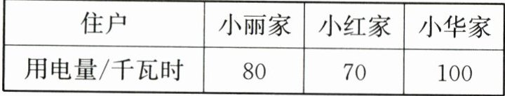3. 小丽、小红、小华三家九月份共付电费 150 元, 如果按每家的用电量分摊电费, 那么三家分别应付多少钱? (4分)