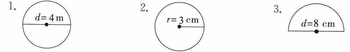 四、计算下面圆或半圆的周长。(12分)