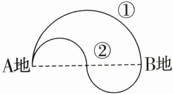 2. 如右图所示,A地到B地的两条路线相比较,(
