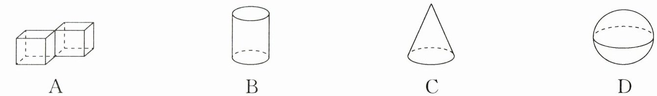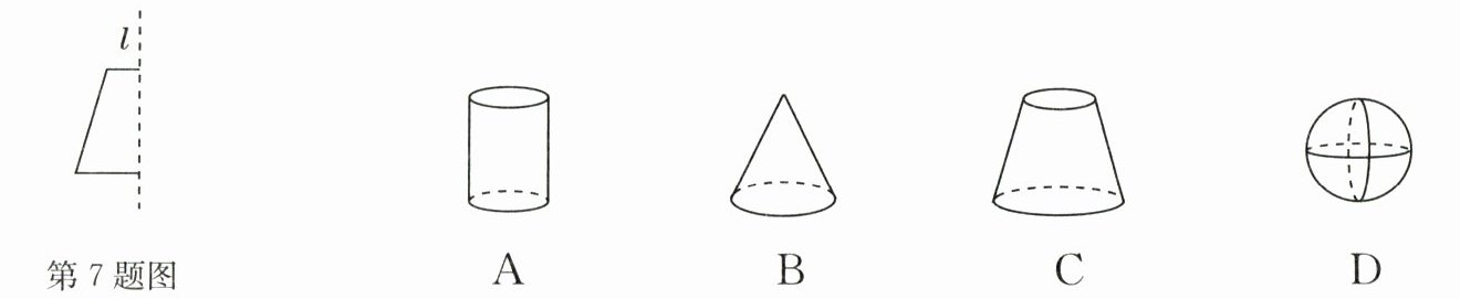 7. 将如图所示的几何图形,绕直线$l$旋转一周得到的立体图形是(