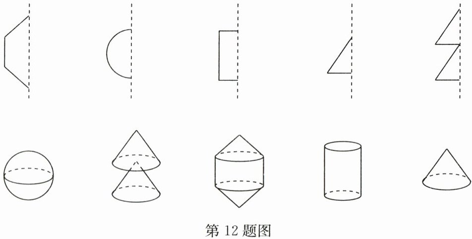 12. 如图,第一行的图形绕虚线旋转一周,能形成第二行的某个几何体,用线连起来.