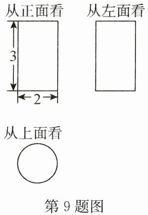 9.D 解析:先由题意确定该几何体是圆柱体,底面直径是2,高是3,可得该几何体的侧面积为2π×3=6π.故选D.