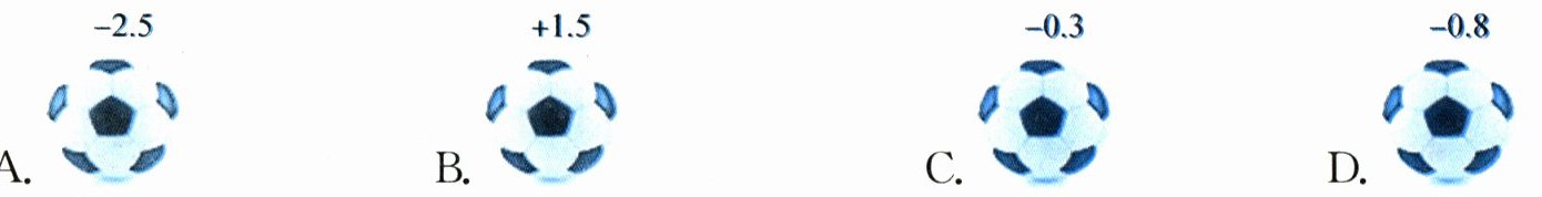 5. 如图,检测4个足球,其中质量超过标准的克数记为正数,不足的克数记为负数. 从轻重的角度看,4个足球中最接近标准的是(