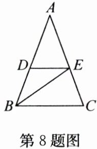 8. 如图所示,在 $ \triangle ABC $ 中,$ BE $ 平分 $ \angle ABC $,$ DE // BC $. 若 $ \angle A = 30° $,$ \angle C = 70° $,则 $ \angle BED $ 的度数是(