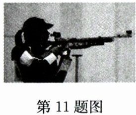 11. 中国射击队在 2024 年巴黎奥运会上以 5 金 2 银 3 铜共 10 枚奖牌的成绩排名射击项目第一. 射击队员在瞄准目标时,手、肘、肩构成托枪三角形(如图所示),这种方法应用的几何原理是