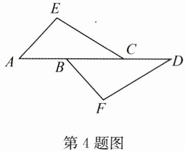 4. 如图,点$A$,$B$,$C$,$D$在同一条直线上,$\triangle ACE \cong \triangle BDF$,$AD = 6$,$BC = 2$,则$AC =$