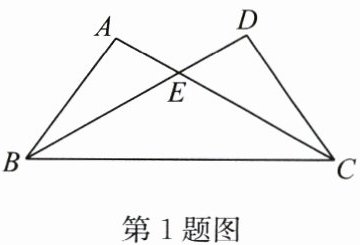 1. 如图,$\triangle ABC \cong \triangle DCB$,若$AC = 7$,$BE = 5$,则$DE$的长为(