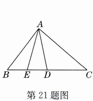 21. 如图所示,AD 是△ABC 的中线,AE 是△ABD 的中线,若 DE = 3 cm,则 EC =