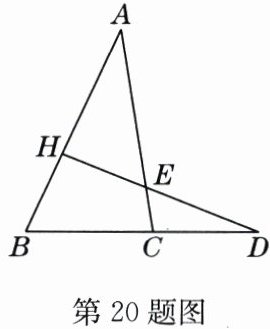 20. 如图所示,有下列结论:①$\angle A > \angle ACD$;②$\angle AED > \angle B + \angle D$;③$\angle B + \angle ACB < 180^{\circ}$;④$\angle HEC > \angle B$。其中正确的是