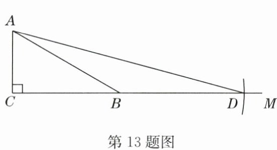 13. 如何求 $ \tan 75^{\circ} $ 的值?按下面的方法作图可解决问题,如图,在 $ Rt \triangle ABC $ 中,$ AC = k $,$ \angle ACB = 90^{\circ} $,$ \angle ABC = 30^{\circ} $,延长 $ CB $ 至点 $ M $,在射线 $ BM $ 上截取线段 $ BD $,使 $ BD = AB $,连接 $ AD $,依据此图可求得 $ \tan 75^{\circ} $ 的值为