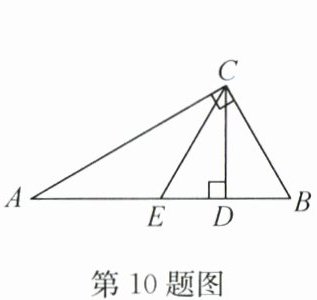 10. 如图,在 $ Rt \triangle ABC $ 中,$ \angle ACB = 90^{\circ} $,$ \angle A = 30^{\circ} $,$ AB = 4 $,$ CD \perp AB $ 于点 $ D $,$ E $ 是 $ AB $ 的中点,则 $ DE $ 的长为